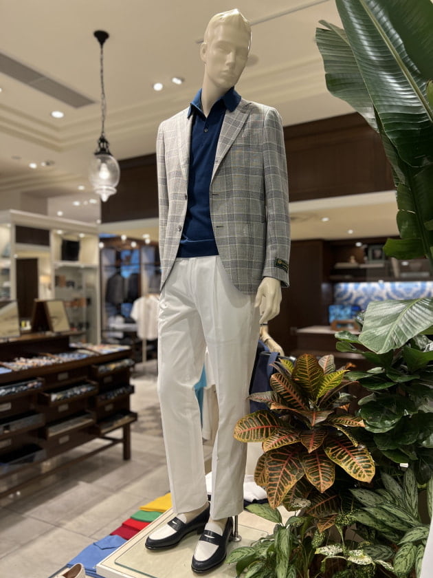 オーセンティックなラグランスリーブのステンカラーに、ガンクラブチェック柄を使用した一着。