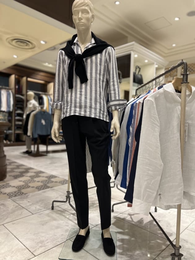 はたまた、ブラックや、オフホワイトのニットをインナーに合わせてモダンに。