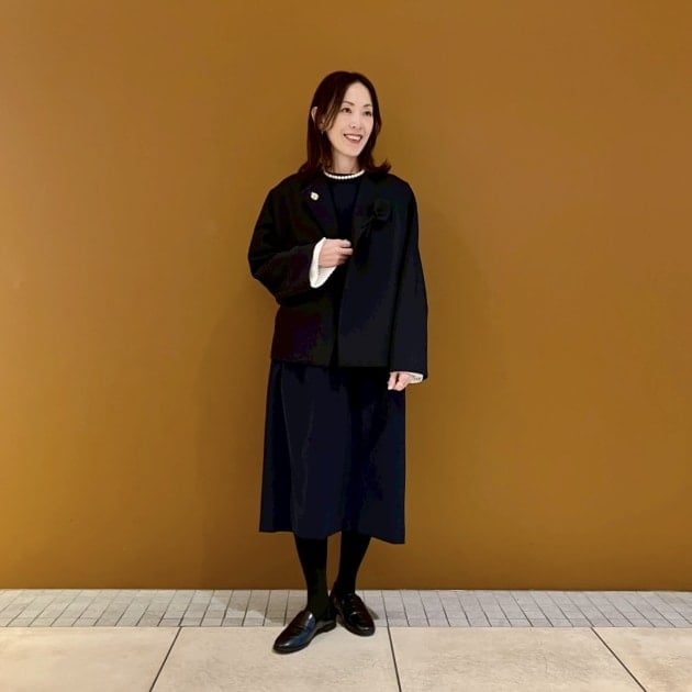 私はツイードジャケットを合わせ、華やかな印象になるようコーディネート。