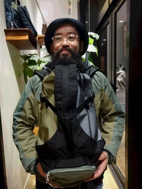 ジャケットとバッグがより複雑なパターンで見事に一体化しています