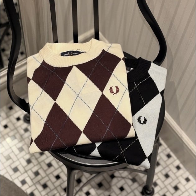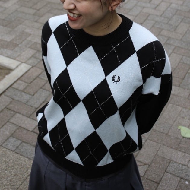 アーガイルの配色が絶妙なニット。ゆったりしたサイズ感ですが、丈感は腰上位置なのでバランスの取りやすさがポイントです。