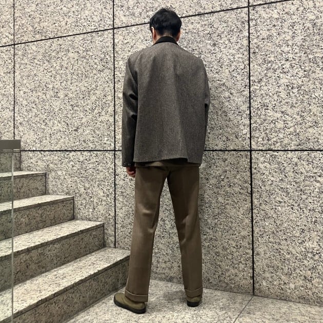 ノーベント仕様なので裾周りの見え方が独特のドレープ感面白い雰囲気です。
