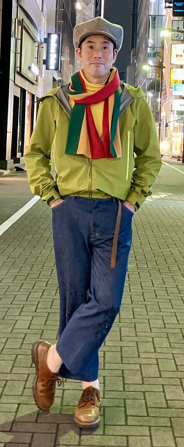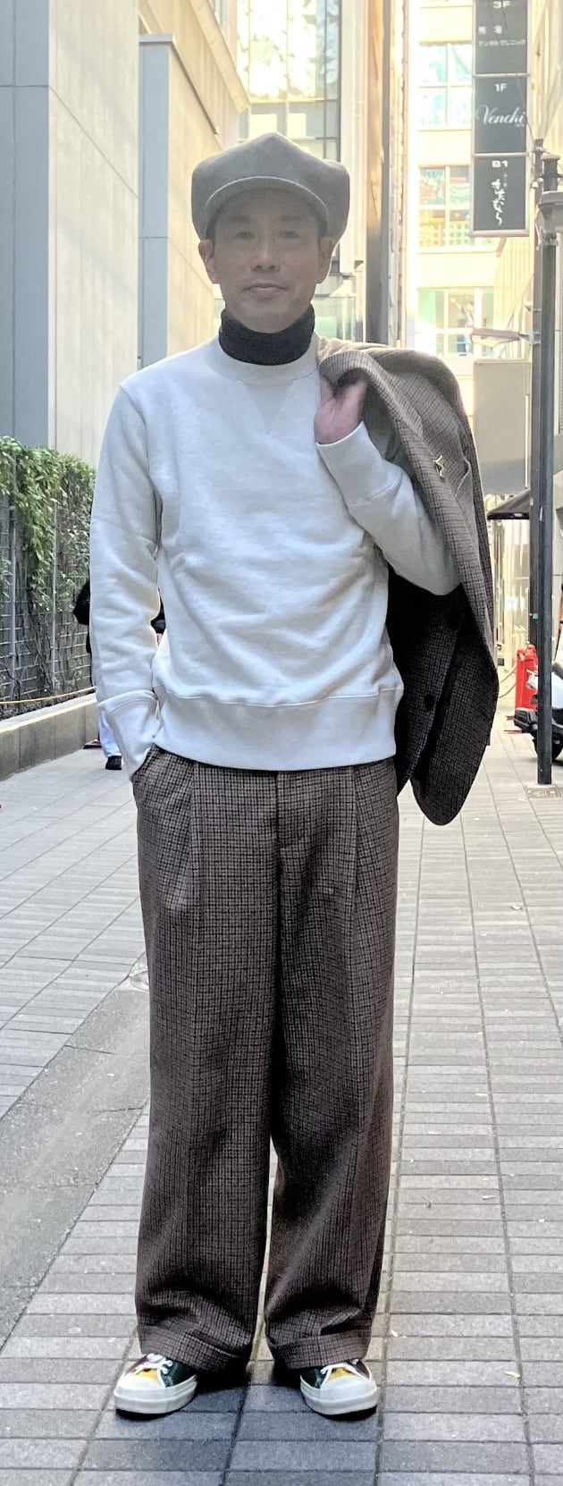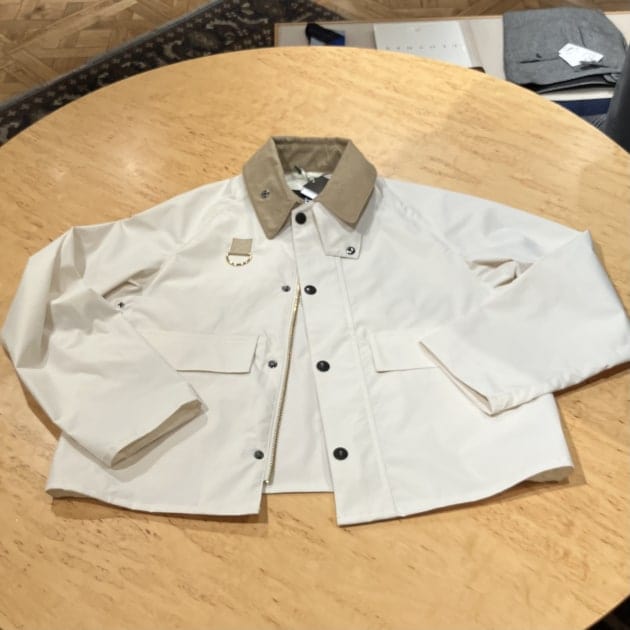 インナーにジャケットを着た際には着丈が出る短めのバランスです。
