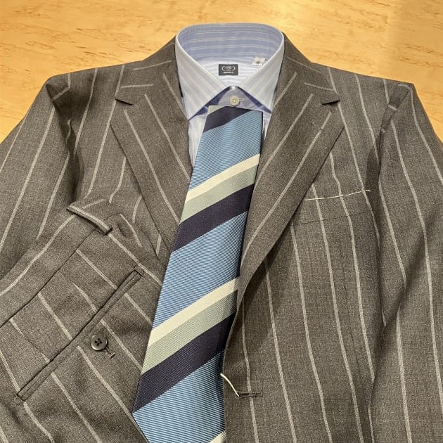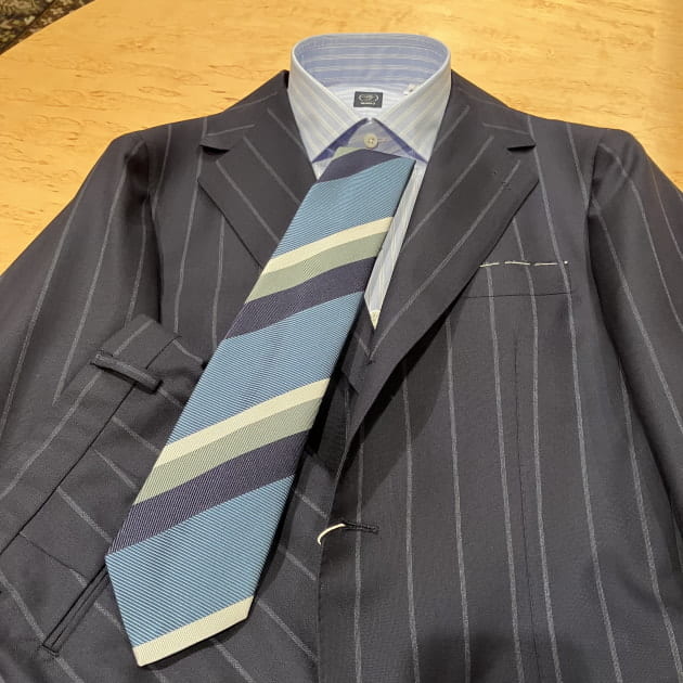 真面目にチノパンやグレースラックスも、主役のジャケットがあるから、他は控えめが良いと思います。