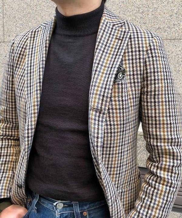 ここ最近は中にクルーネックニット(着用しているのはBEAMS Fオリジナル)を着用する機会が増えてきました。