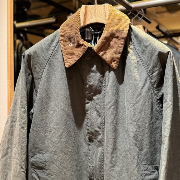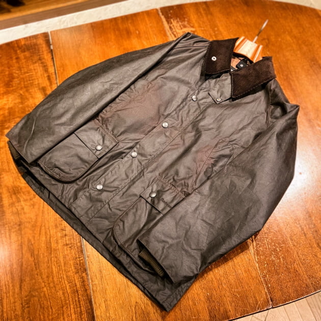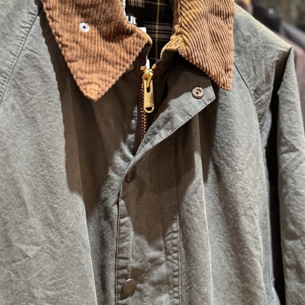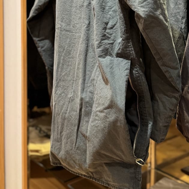 洗いのかけたオイルドクロスにゴールデンブラウンの太い畝のコーデュロイ、フロントファスナーにはいわゆる棒ジップを採用。