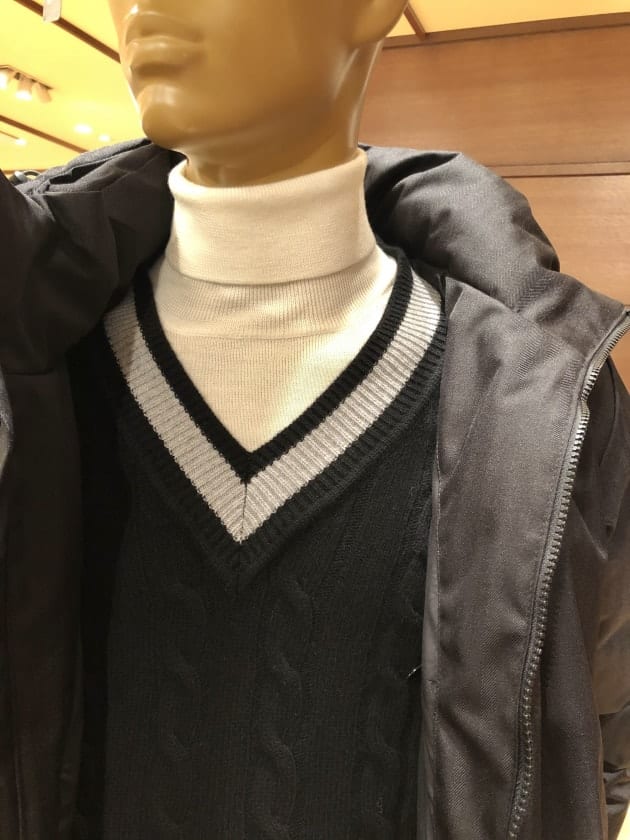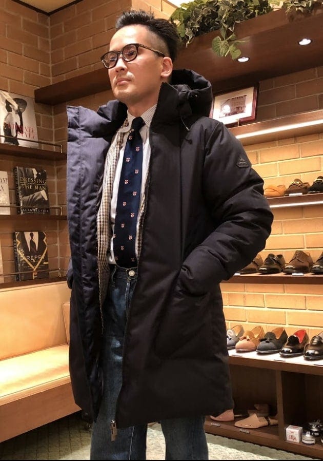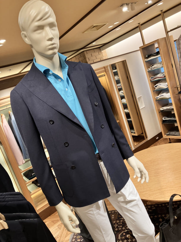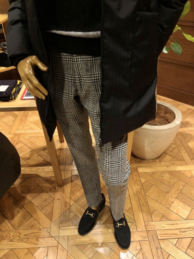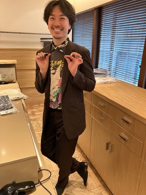 この日は昨年購入した<Brilla>オリジナルスーツとシャツに<VANS>のスニーカーでコーディネート。Ermenegildo ZegnaのBIELMONTEの生地を使用したグリーンとネイビーが織り混ざったような色合いのスーツに、マルチストライプのプルオーバーシャツ。どちらも昨年はすごく人気があり、どちらの商品もラスト×1点のキャンセル待ちで購入でした。お客様が最優先なのでスタッフは仕方がありません。BIELMONTEはゼニアらしくない張りのある生地感で個人的に気に入っていて、その前の年も最後のキャンセル待ちの入荷でブラウンを購入している経緯があります。