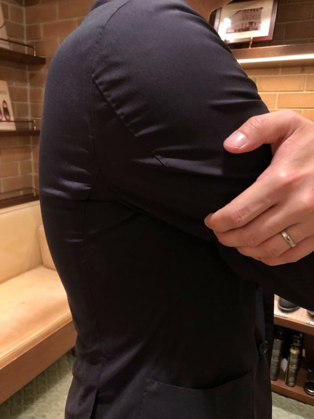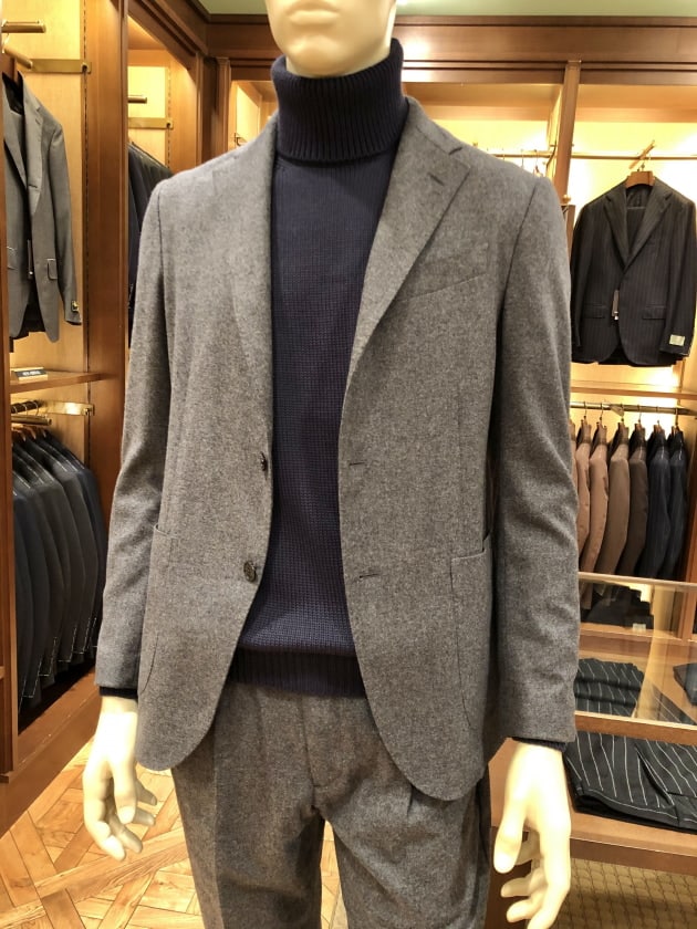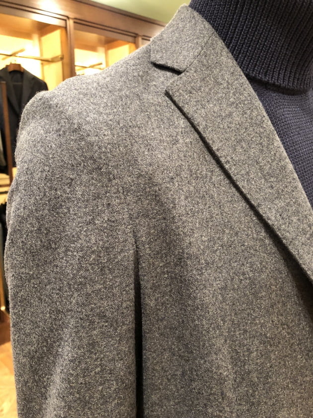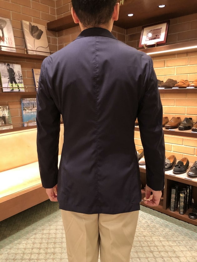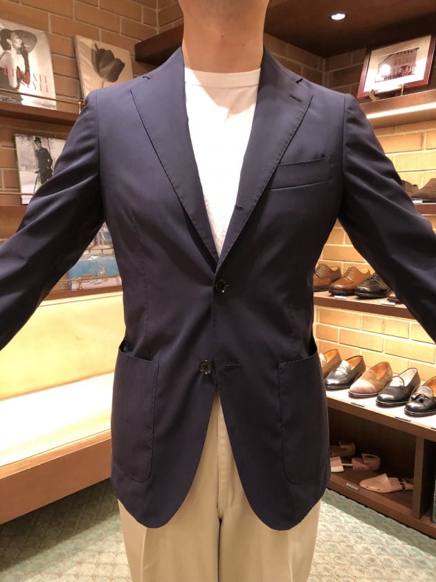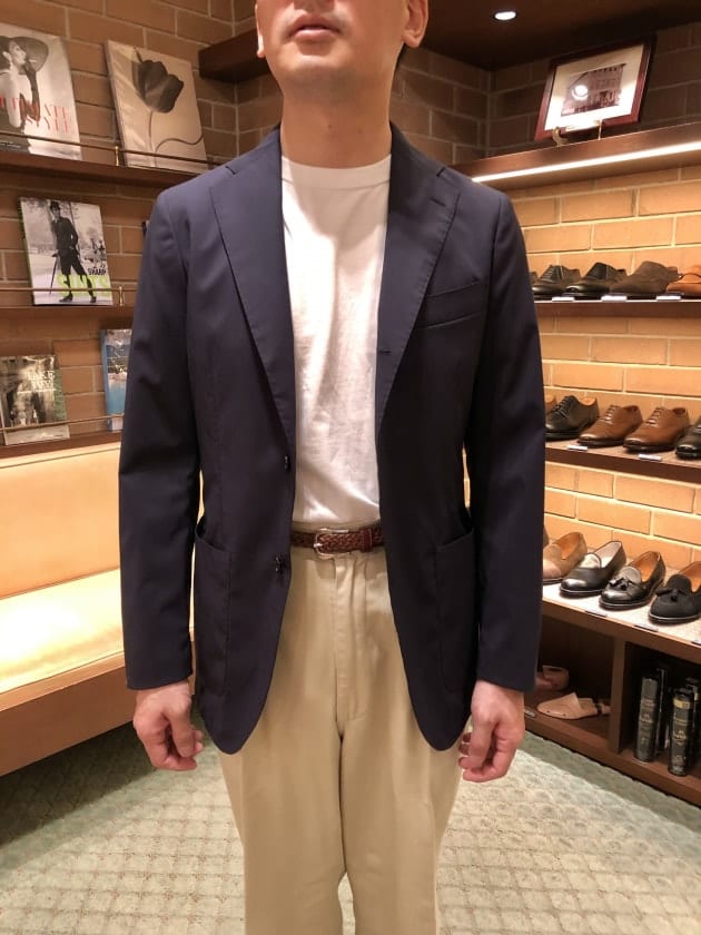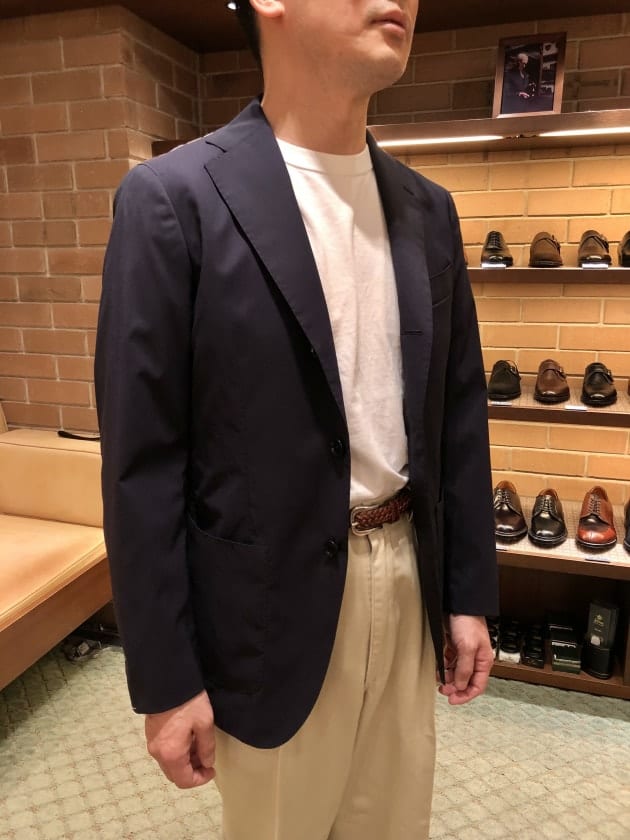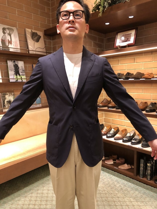 ジャケットのラペルにシャツの襟を重ねるリラックスした着こなしもしっかりと対応致します。