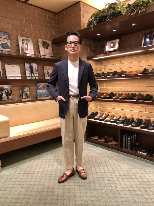 軽さと品を持ち合わせた注目のコンビシューズを履いた今シーズンらしいカジュアルなジャケットコーディネートに取り入れてみたり。