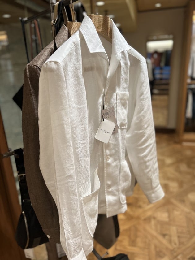 イタリアはナポリが誇るリネン素材を専門とするイタリアシャツブランドである〈Massimo d'Augusto(マッシモ ダウグスト)〉のシャツジャケットが本日の主役。