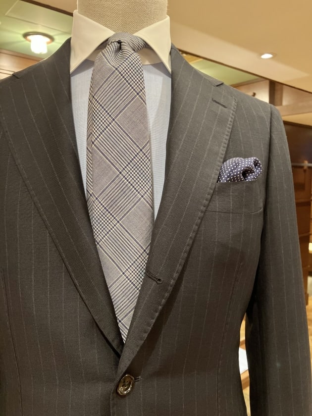 今回ご紹介したスーツは今回のようにタイドアップは勿論、秋冬らしく例えばタートルネック等のニットをタックインした着こなしまで幅広いコーディネートをお楽しみ頂けますよ。