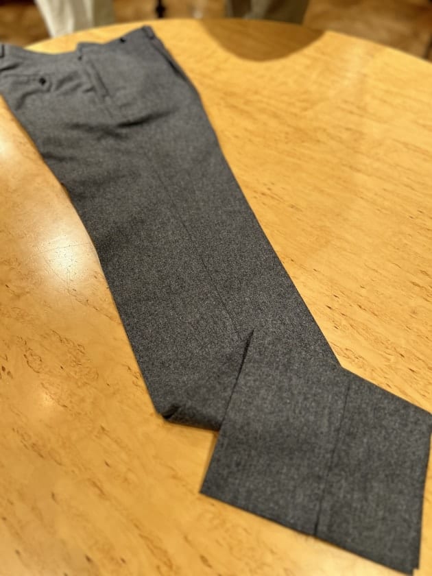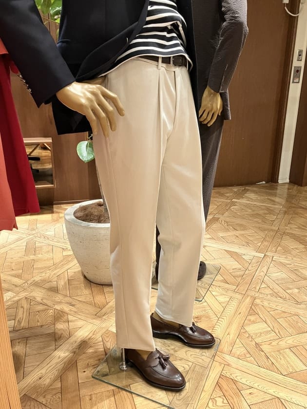 付属のスラックスはベルトループ付き、1アウトプリーツの王道な仕様。