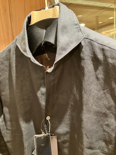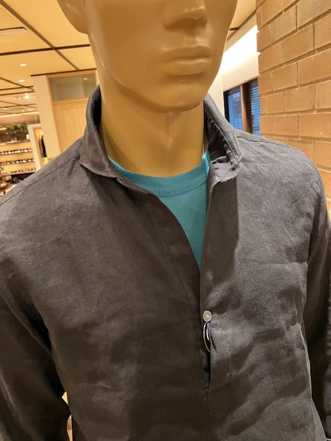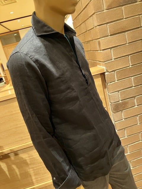 フロントボタンを留めた場合も、比較的ゆとりのあるフィッティングのお品なので、全く窮屈感はありませんね。