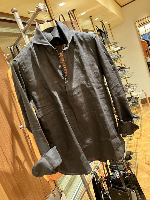 極端に細かったりもせず、着丈が長過ぎず短過ぎずという絶妙な塩梅であるところに、「本物への追及」を意識する<AUBERGE>らしさが漂いますね。