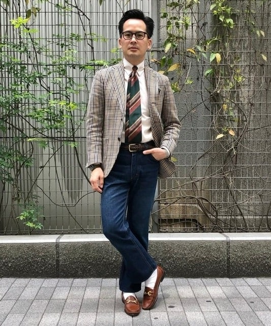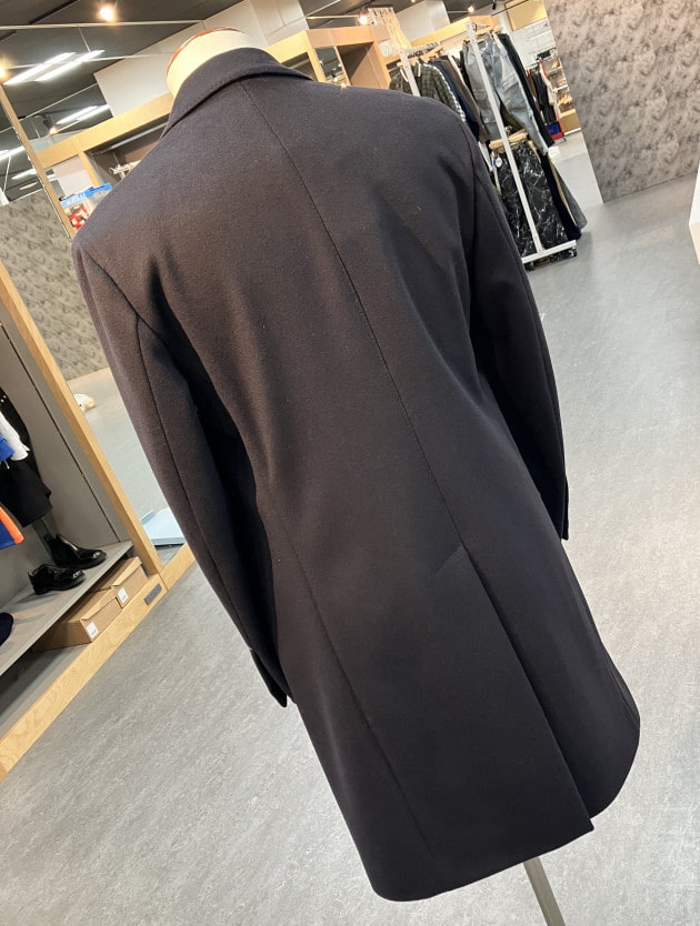 ゴージ位置はやや低く、ラペル幅はやや広く取っています。