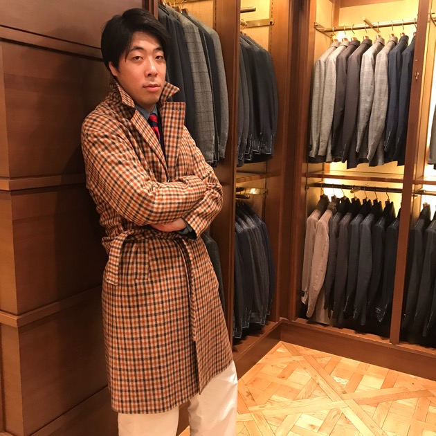 この日は<Dieffe Kinloch>のピスタチオ柄のハンカチをアクセントにしました。