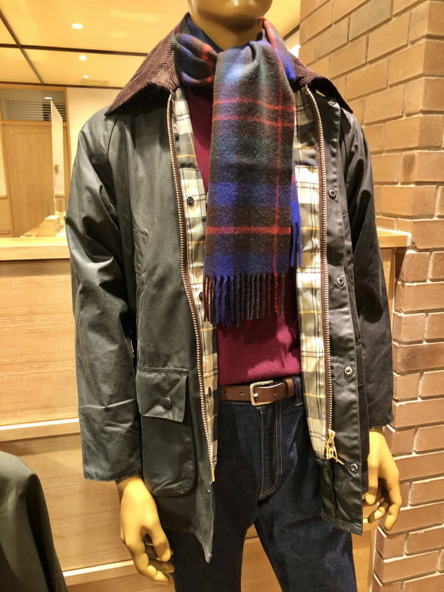 今回はジャケットの上から重ねるやや変化を付けたコーディネートに取り入れておりますが、
