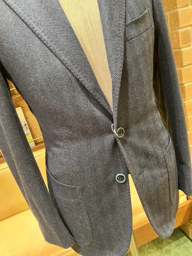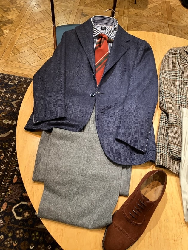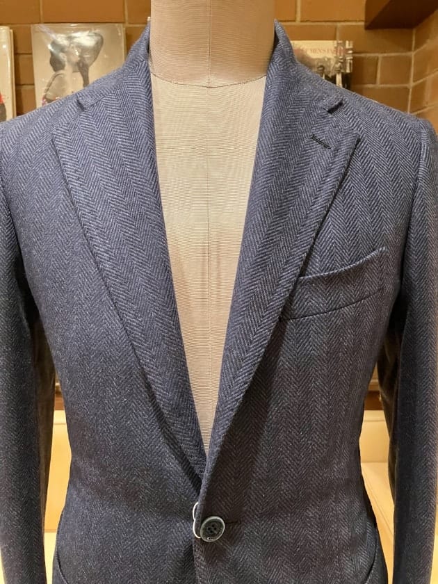 英国的と聞くとウエイトあるイメージですが、こちらはシルクが混紡されており驚く程の軽量化を実現。