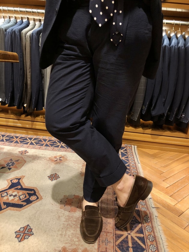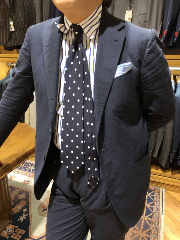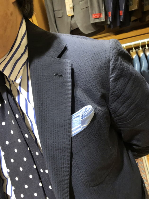特に、シアサッカー素材のようなリラックス感ある素材と相性が良いと思います。