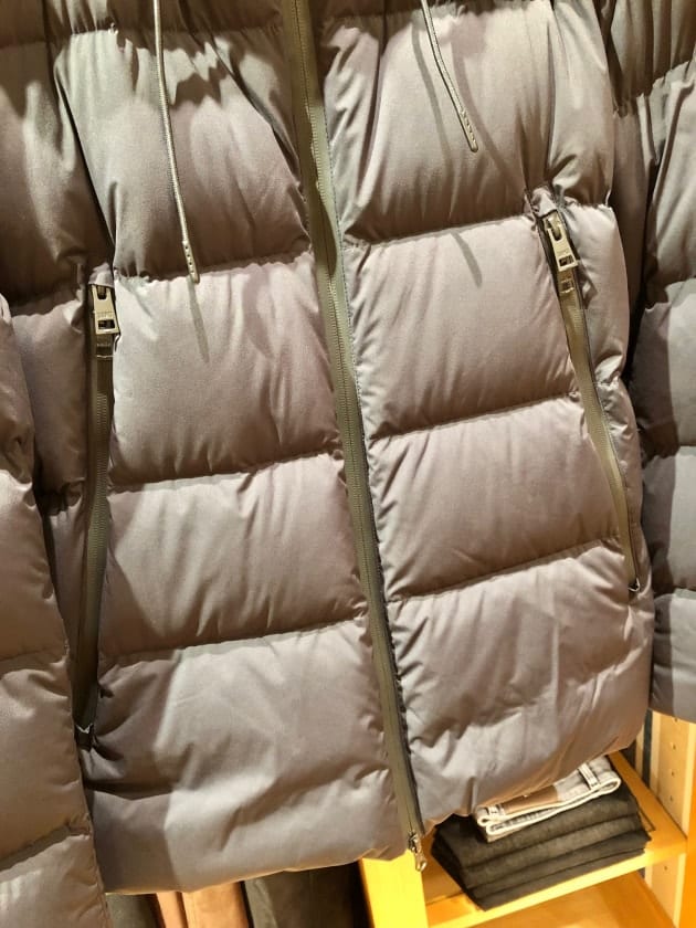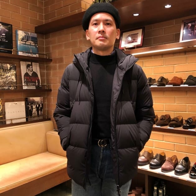 ブランドのデビュー当時から存在する、シャイニーナイロンが特徴的なダウンジャケット。