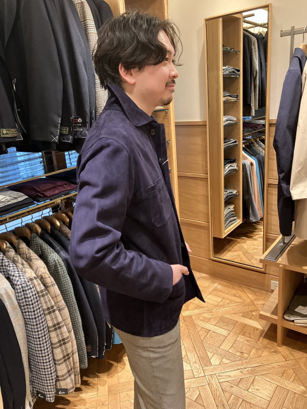 〈International Gallery BEAMS〉のオリジナルブランド〈QUATTROCCHI〉のスエード トラッカージャケットです。