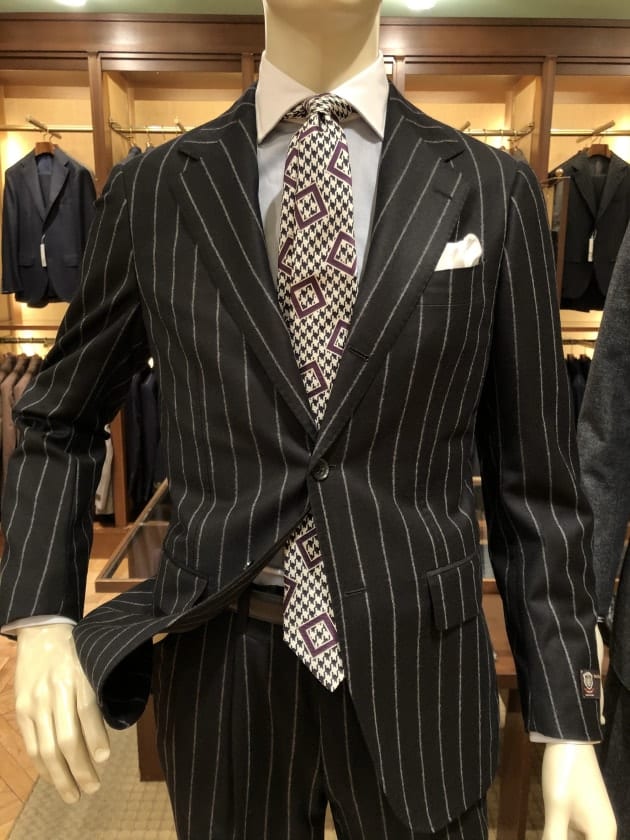 イタリアはTALIA DI DELFINO(ダリア ディ デルフィノ)のモダンなブラックのストライプ柄のスーツを中心に、