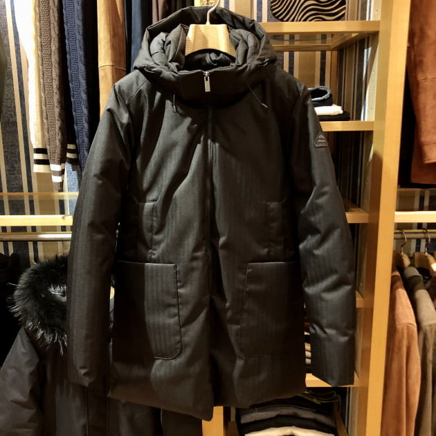 ブランドのデビュー当時から存在する、シャイニーナイロンが特徴的なダウンジャケット。