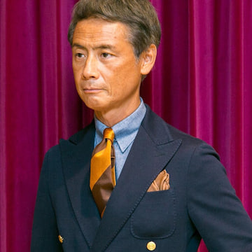 今回はグレースーツにありがちな地味なイメージを払拭したく、鮮やかなサックスブルーのシャツに春夏シーズンらしい白地の分量が多いネクタイを合わせて爽やかでクリーンに合わせてみました。