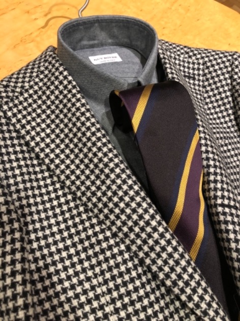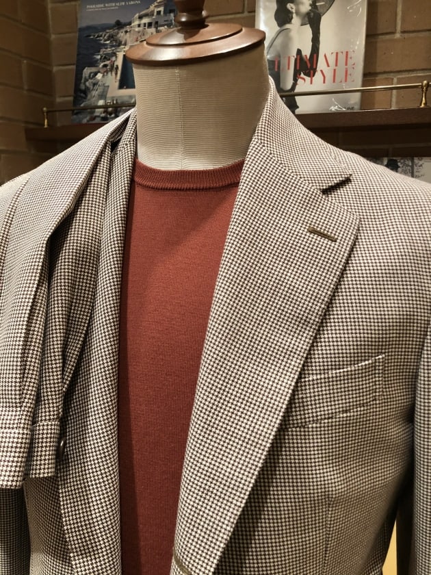 〈Stile Latino〉のブラウンハウンドトゥースジャケットとの合わせ方のご紹介など。
