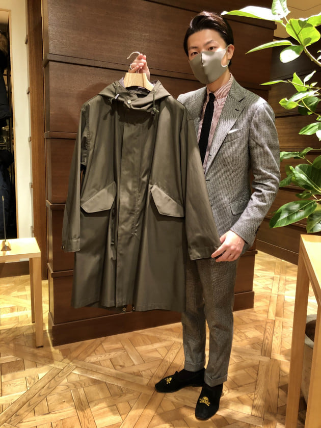 フード部分のボタンだけを留めて前は開けて流す着方なんかもいいですね。