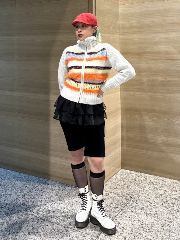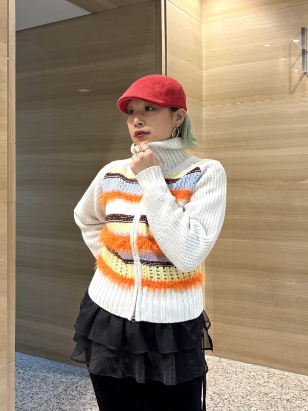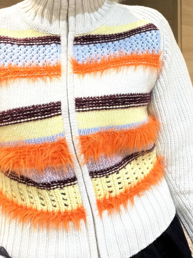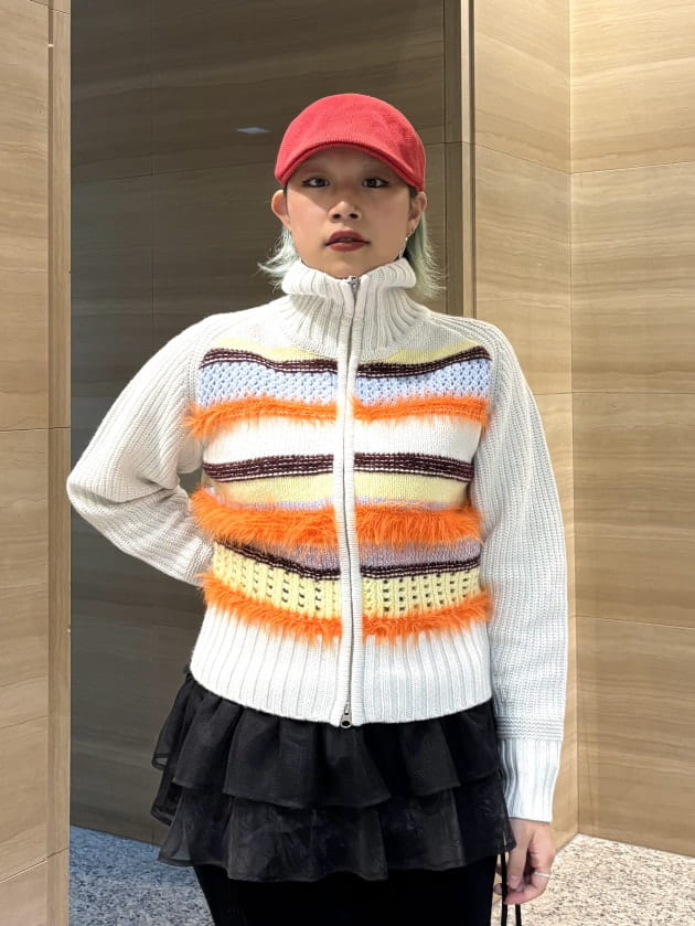 ボーダーの凹凸がフワフワしていて1枚で主役になるアイテム!
