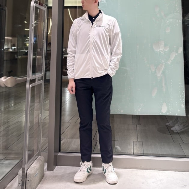 このパンツは、同シリーズのブルゾンと合わせたセットアップスタイルが一番おすすめ。