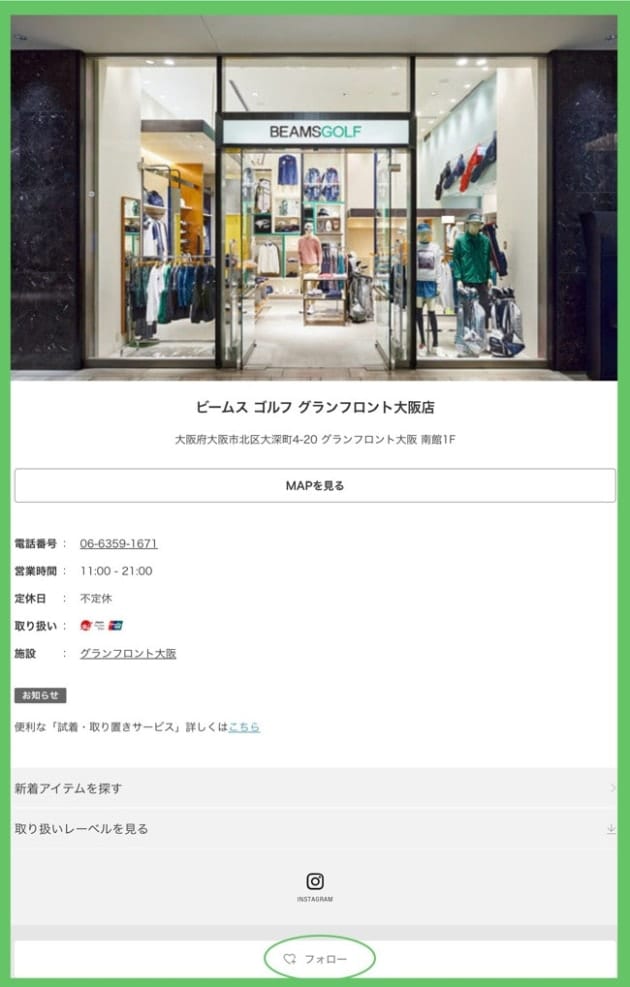 ◎ビームス ゴルフ グランフロント大阪
