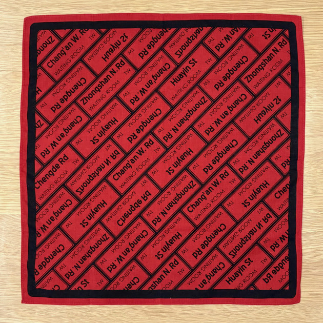 続いて、2023年に台湾・台北のセレクトショップ「Waiting Room」の12周年を祝して発売されたレッド・ブラックカラー。店舗の周辺の「中山北路」や「長安西路」などを記したバンダナ。