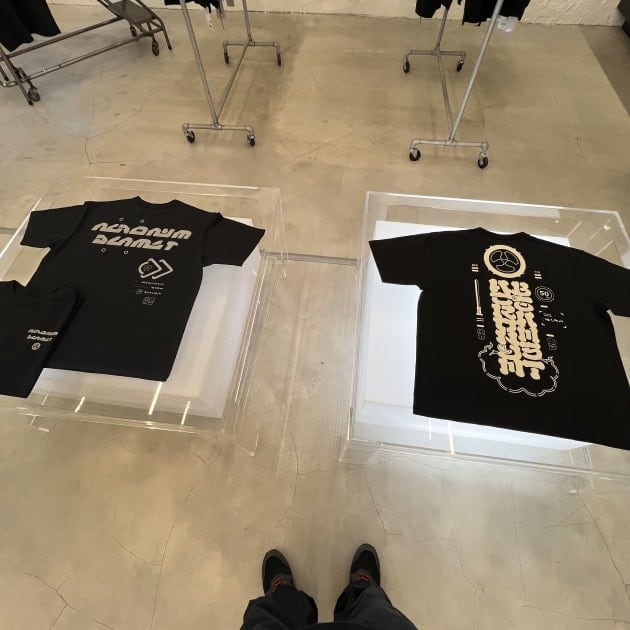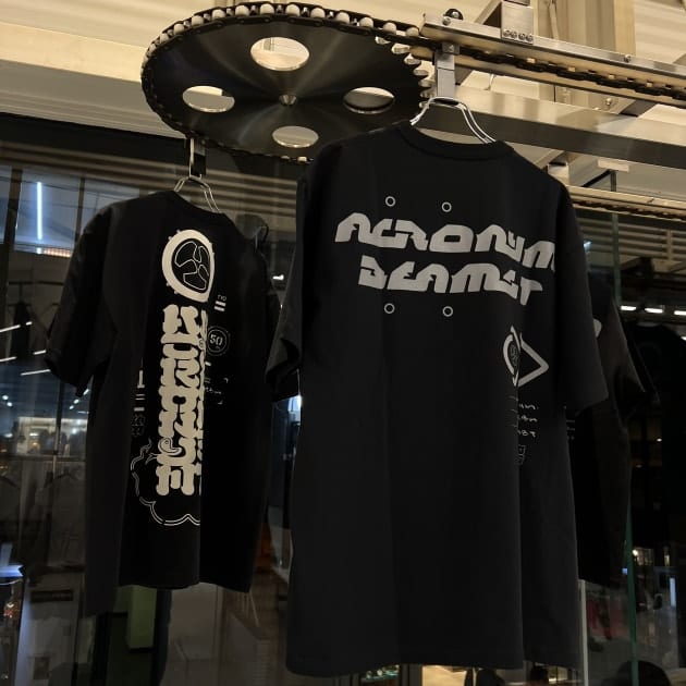店内も会期終了である3/15(日)まではACRONYM仕様に。レーンでは本コラボTシャツがぐるぐると回ってます!