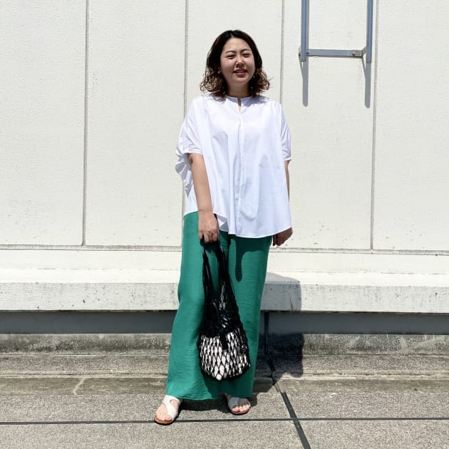 白シャツと合わせてもgreenが映えますよね〜