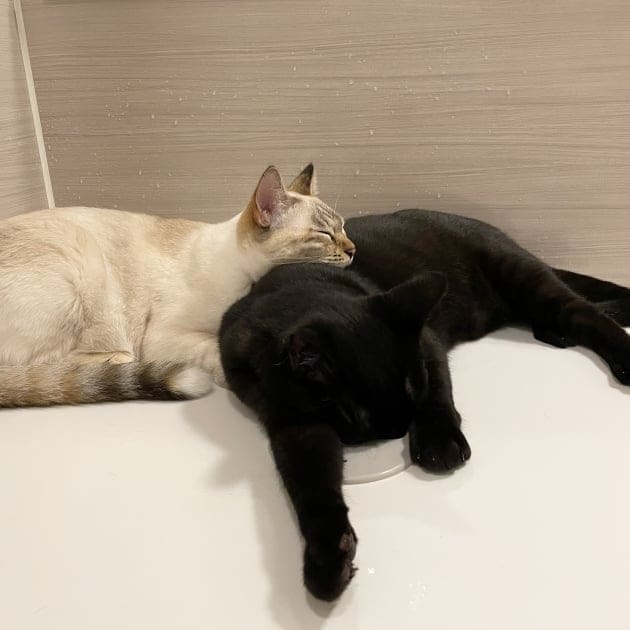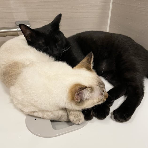 蓋の上でゴローンなおふたり。