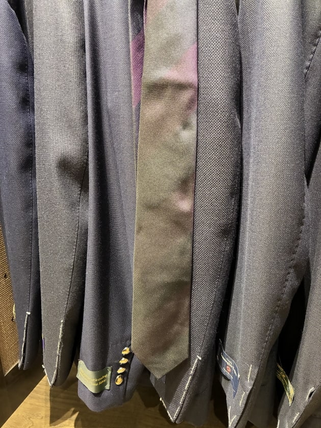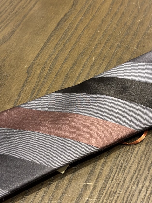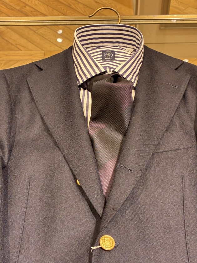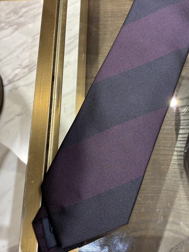 続いて〈BEAMS F〉のオリジナルから。かなり濃いネイビーとパープルの段落ちタイです。
