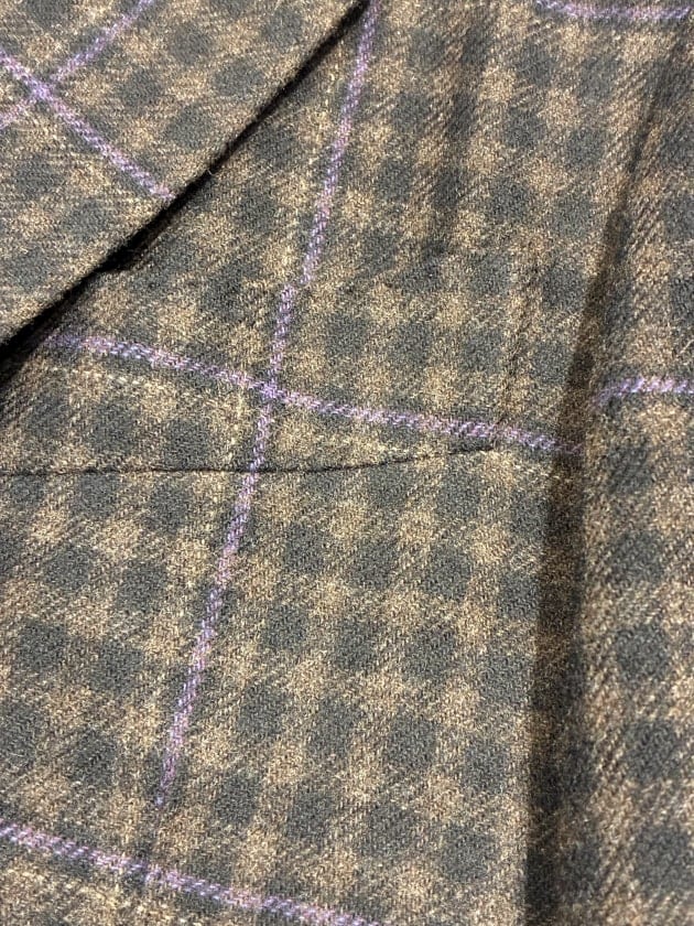柄にはブラウン、ブラックのシェパード?のようなチェックにパープルのペーンが入っています。