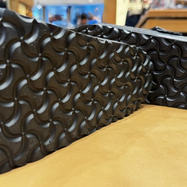 ブランドの象徴の“ボーンパターン”と呼ばれる独自デザインです。アウトソールに使われてきたアイコニックな柄を、アッパー全体にスムースレザーで表現しています。