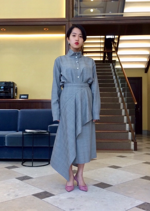 こちらはアシンメトリーなデザインになっております。1枚で存在感があるので、シンプルなトップスと合わせてもバッチリ決まりますね。歩くと動きが出て素敵です。