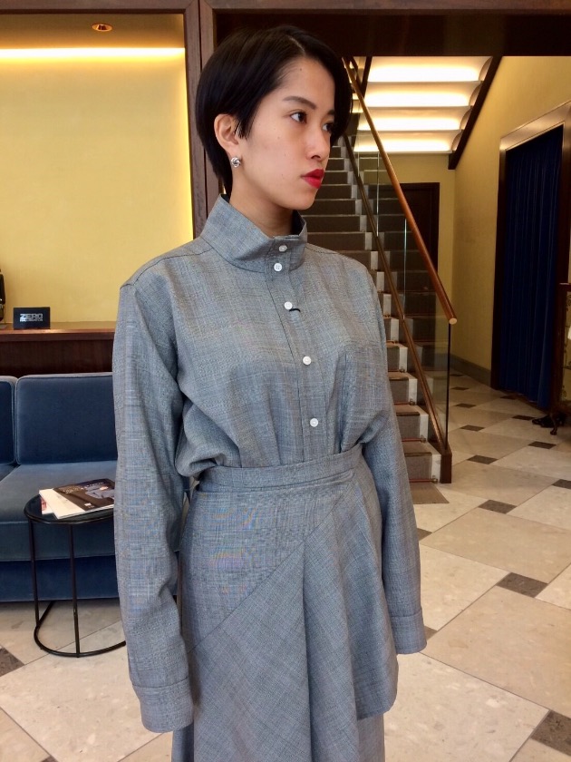 もちろん別々に着ても可愛いですが、セットアップで着るのがオススメです。チェックは可愛らしいチェックですが、素材がてろっとしていて上品に着ていただけますよ。