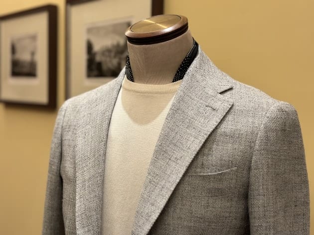 昨年も展開しておりました、<SPENCE BRYSON>のアイリッシュリネン。今季は少しウェイトを軽くしてもう少し夏の期間も着ていただけます。インナーは、▼Knit