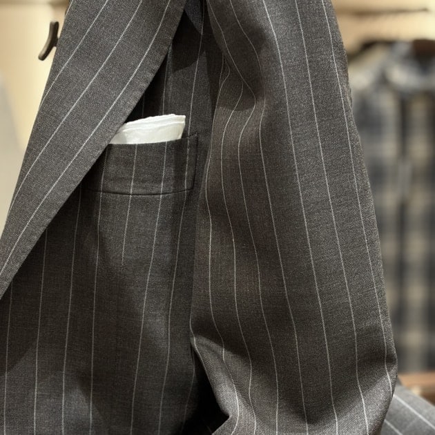 ウールの毛羽立ちが然程なく、ガーゼのような軽やかなタッチなので春夏のスーツ生地に!
