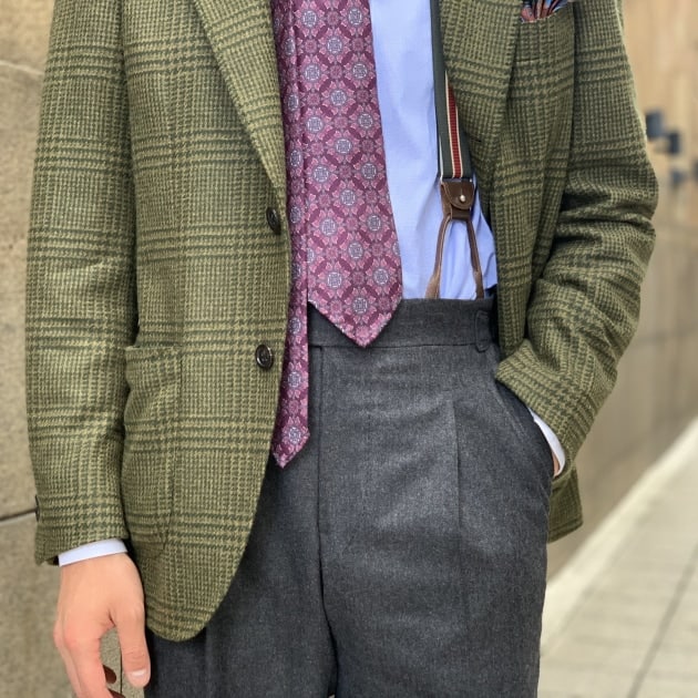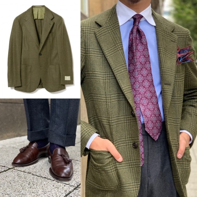 毎年ラインナップでも見るような定番的な生地かもしれませんが、Vゾーンの組み合わせはこのようなジャケットが一番組みやすいんです!万能なジャケットの買い足しをお考えの方には是非一度着て頂きたい一着です!