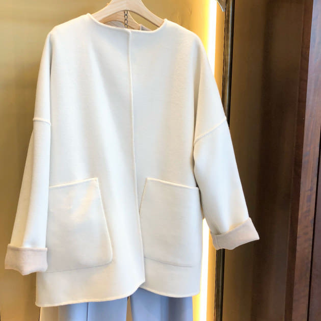 ボリュームのあるボトムスのアウターとしてや、ロング丈だと合わせるのが難しいとお悩みの小柄な方にもぜひオススメな1着です。