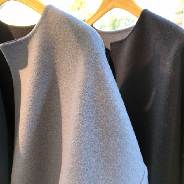 2つ目は、昨年までは地厚な膨らみのあるビーバーのリバー素材を使用していたものを、今年は中肉でフラットな生地感に変更。