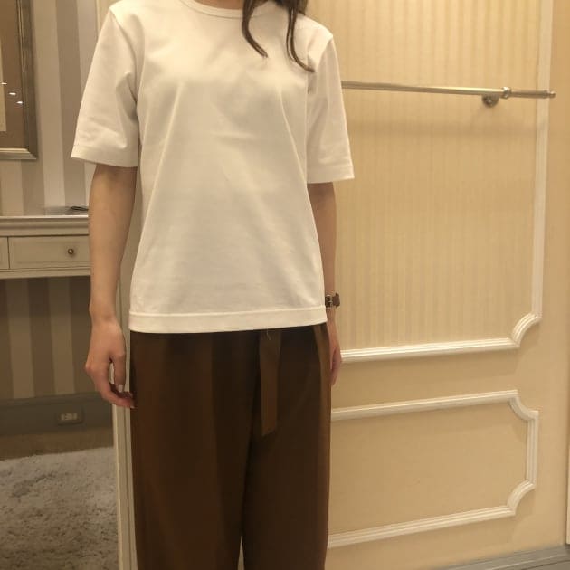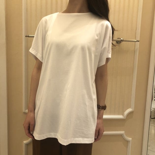 痩せ型のいい点は鎖骨や二の腕がすっきりしている所。そこをうまく活用してヘルシーかつ女性らしく1枚で着るのがおススメです◎