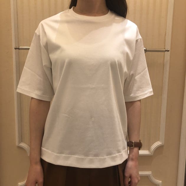 シンプルに一枚でさらっと着てみました。下にはチューブトップを合わせています。黒より白を選ぶことで顔のトーンアップにつなげてます。