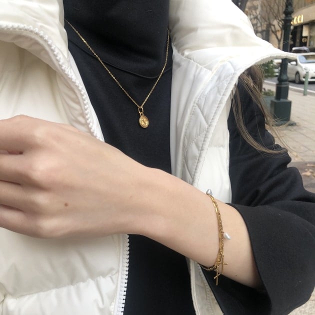 ネックレスは程よいボリューム感を楽しめる一点。